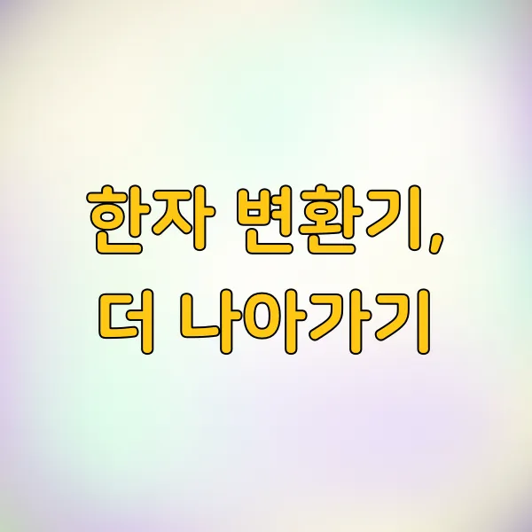 - 팁: 변환기에서 제공하는 '한자 사전' 기능을 적극적으로 활용하세요. 뜻이나 부수를 입력해서 정확한 한자를 찾는 데 도움을 받을 수 있습니다.