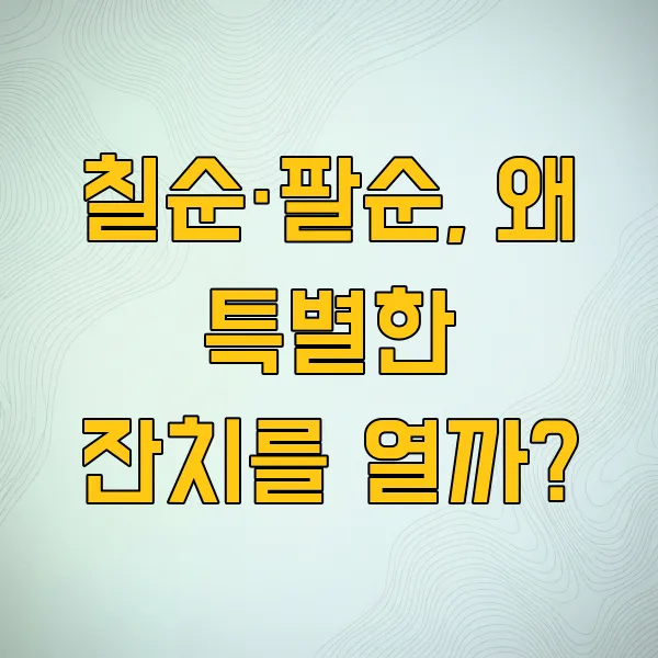 명절이나 가족 모임에서 "올해 누구누구 칠순이래", "벌써 팔순이라니 시간 참 빠르다" 하는 말들 자주 듣거든요. 근데 가끔 헷갈릴 때가 있어요. 도대체 몇 년생이 칠순이고, 또 몇 년생이 팔순인지 말이죠. 오늘은 칠순과 팔순을 맞이하는 주인공들을 정확히 알아보는 시간을 가져볼까 합니다.