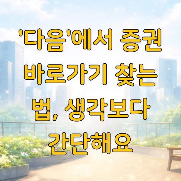 💡 잠깐! '다음 증권'이라는 이름으로 특정 서비스가 따로 있는 것은 아니에요. '다음' 포털 내에서 증권 정보를 얻거나, 검색을 통해 각 증권사로 연결되는 바로가기를 찾는 방식이라고 이해하시면 됩니다.